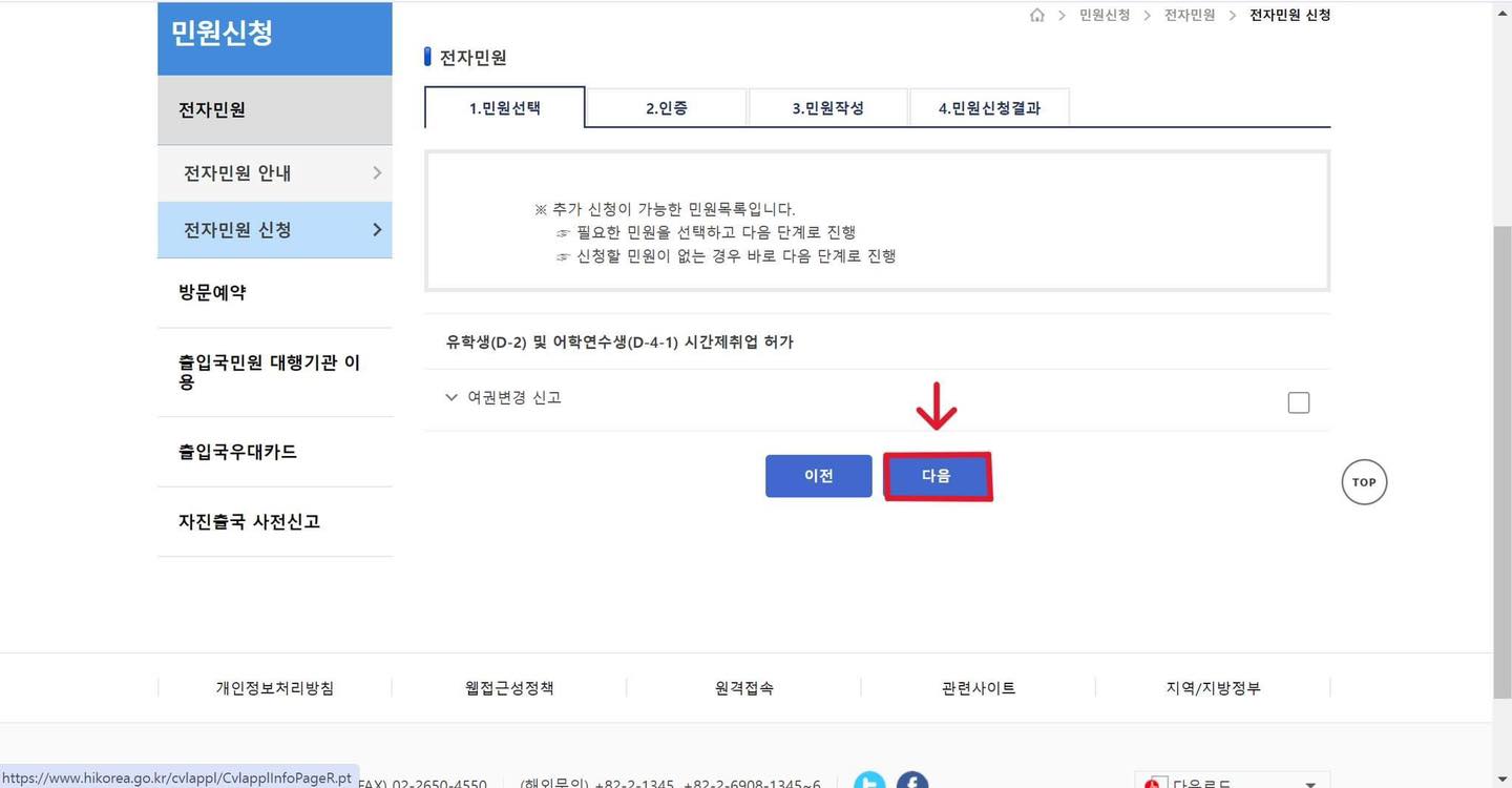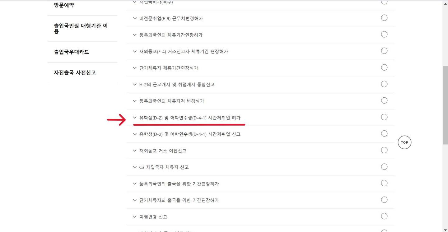 +Bước 2: Chọn 시간제취업 -> 유학(D-2) 및 어학연수생(D-4-1)시간제취업 허가