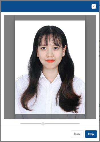 Lưu ý: Sau khi upload ảnh lên, thực hiện căn chỉnh ảnh đúng khuôn hình sau đó ấn “Crop” để hệ thống lưu lại thông tin.