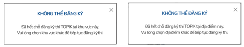 Trong trường hợp, khu vực/ địa điểm thi đã hết số lượng được đăng ký, thí sinh vui lòng lựa chọn khu vực/ địa điểm thi phù hợp khác.
